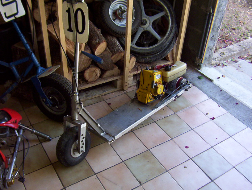 Ici, ce pocket bike semble identique, mais la petite barre inclinée est un peu cintrée. De plus la barre qui supporte la roue est apparamment en tube rond, ce qui est sûrement moins costaud que sur la photo précédente: